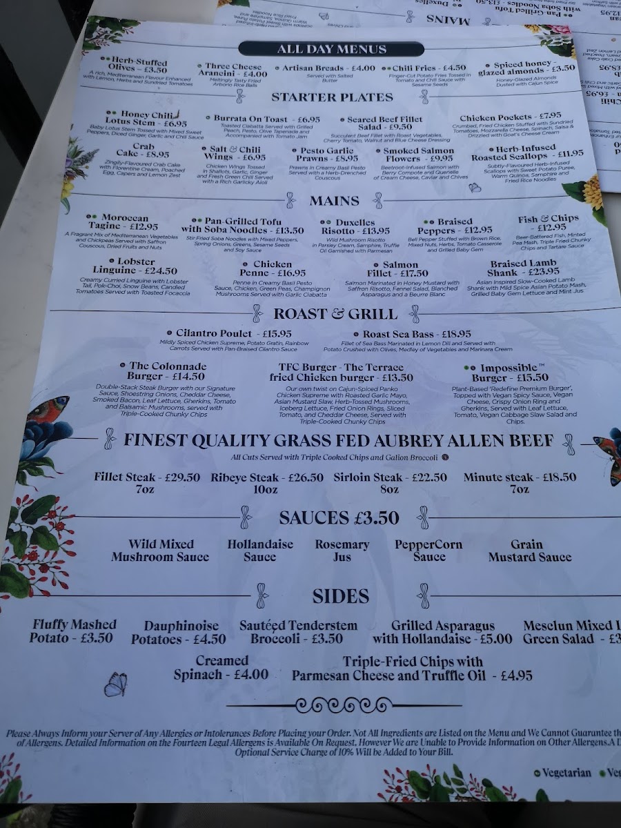 The Terrace Bar & Restaurant Leamington Spa Menu Review